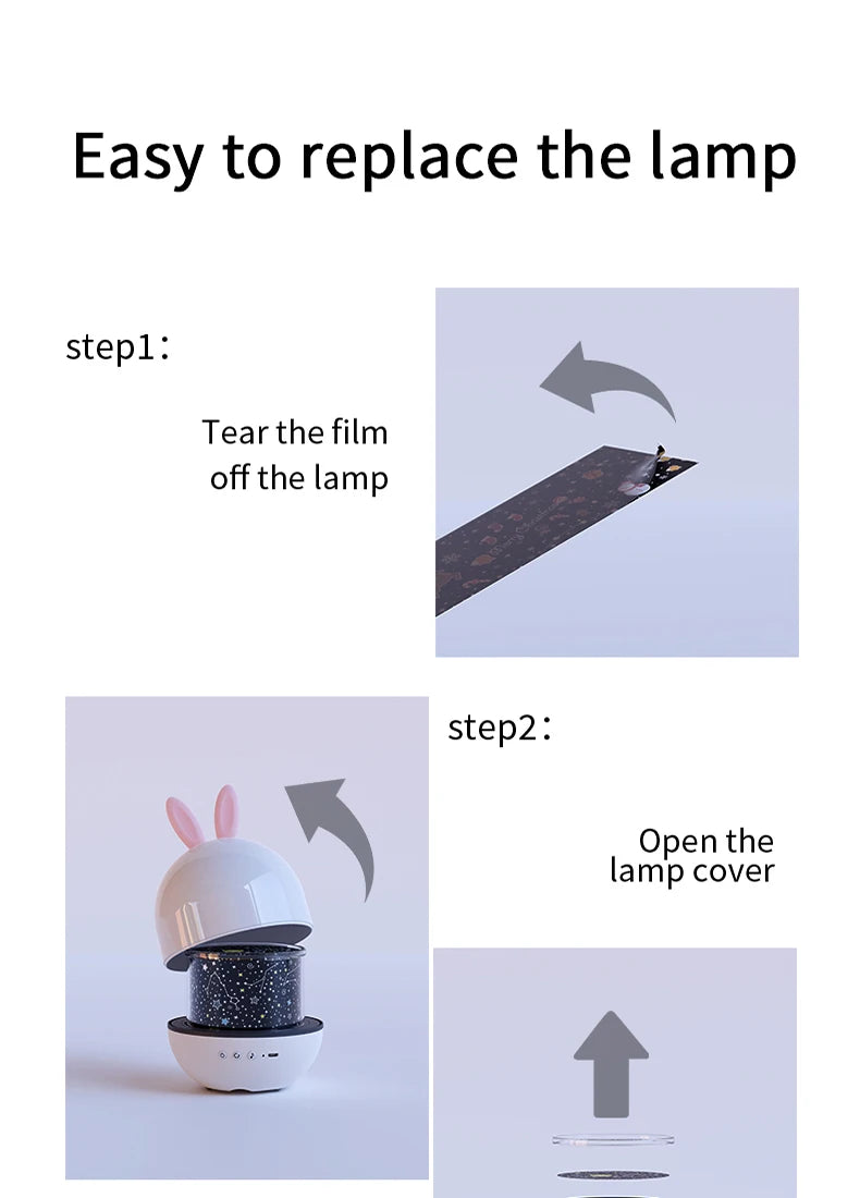 Transform your child's bedtime routine with the enchanting Sovere Star Projector Night Light. This delightful projector lamp creates a mesmerizing galaxy on the walls and ceiling, featuring moving stars, planets, and adorable shapes that foster a calming atmosphere for sleep. The unique dome design, complete with removable bunny ears, serves as both a comforting night light and a mini planetarium, making it perfect for children's bedrooms or storytime adventures.
