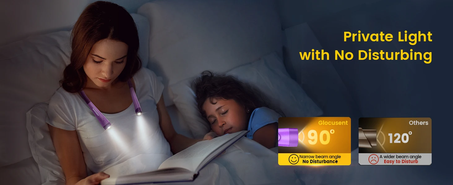 Why settle for less when you can have a reading light that combines functionality with comfort? The narrowed neck area ensures a lighter fit, weighing only 4.52 oz, while the 90° narrow beam creates a private reading zone, focusing light precisely where you need it. Plus, with a built-in 30-minute auto-off timer, you can read without worry, knowing the light will turn off automatically.