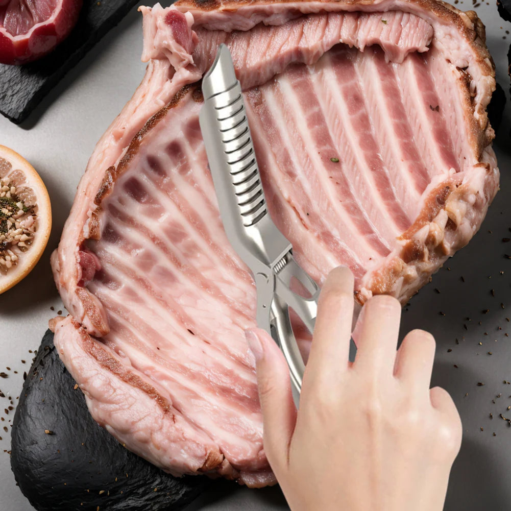 Transform your rib preparation process with our Stainless Steel BBQ Rib Preparation Tool. Designed for both BBQ enthusiasts and professional chefs, this tool simplifies the tasks of trimming, peeling, and cleaning ribs, allowing you to focus on what truly matters: the flavor. Crafted from high-quality stainless steel, it ensures durability and precision, making it the perfect companion for achieving perfectly prepared ribs every time.