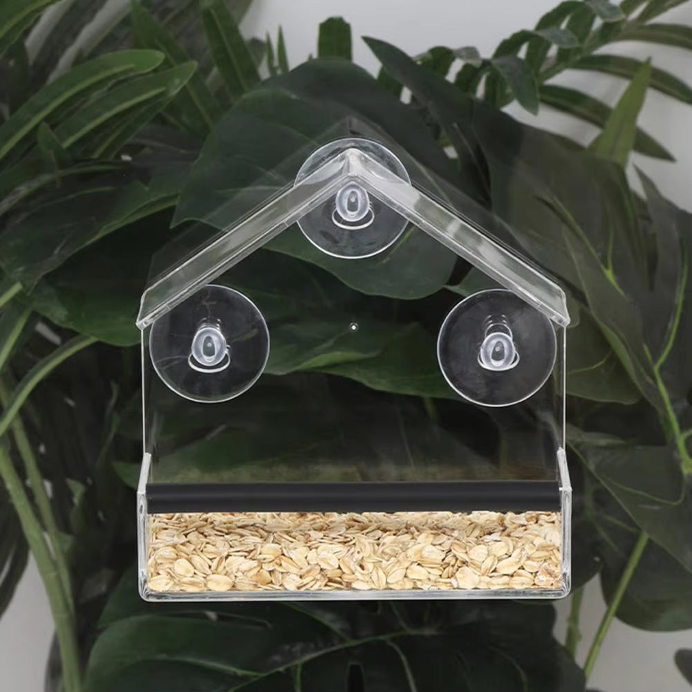 Why choose this window bird feeder? Its durable acrylic construction ensures long-lasting use, while the large capacity minimizes the need for frequent refills. The soft edge design protects birds from injury, and its versatility makes it suitable for use in homes, gardens, balconies, or offices. Experience the joy of watching birds feed with this easy-to-maintain feeder!